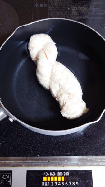 次は、糸の撚りが戻らないように撚り止めを行います。